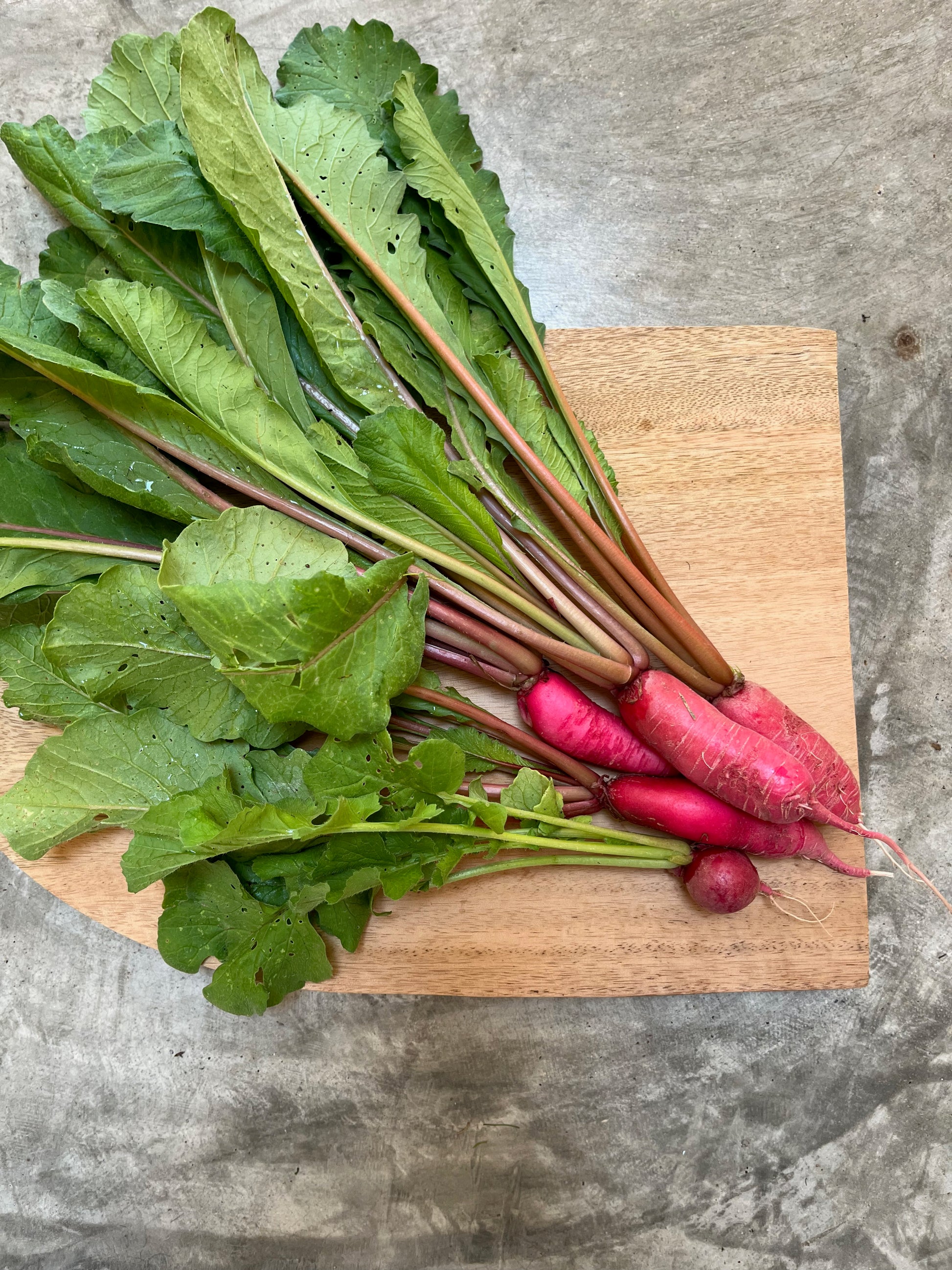 Experience the delicate sweetness of our organic pink radish. Each radish is a burst of mild, sweet flavor, adding a colorful, nutritious touch to salads, garnishes, or as a crunchy snack.